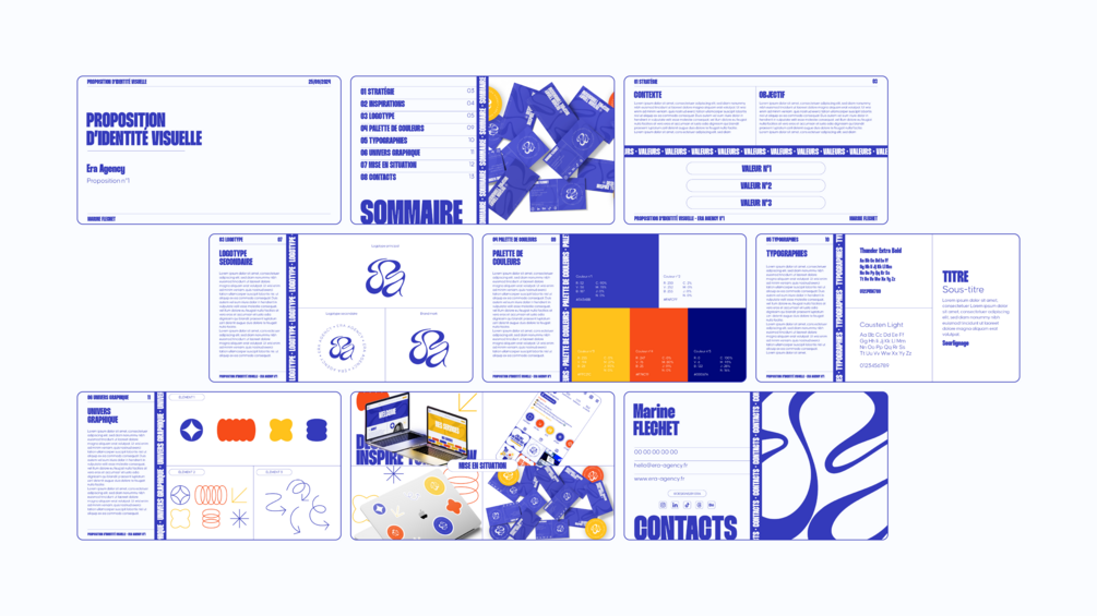 Il vous guidera au fur et à mesure afin de bien présenter votre stratégie et vos idées pour l’identité visuelle de votre client !